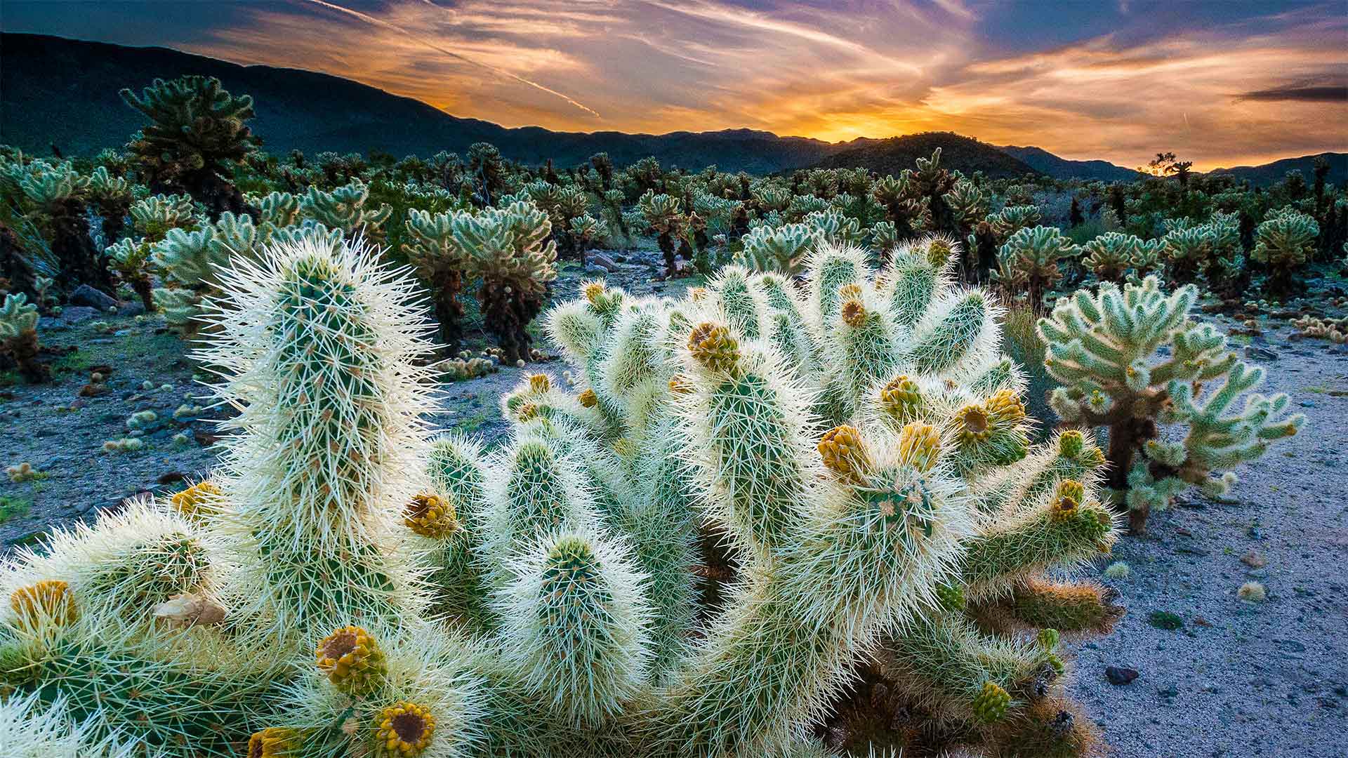 The Cholla Cactus Garden in Joshua Tree National Park, 加利福尼亚州 (© 布莱恩 Jolley/Tandem Stills + Motion)