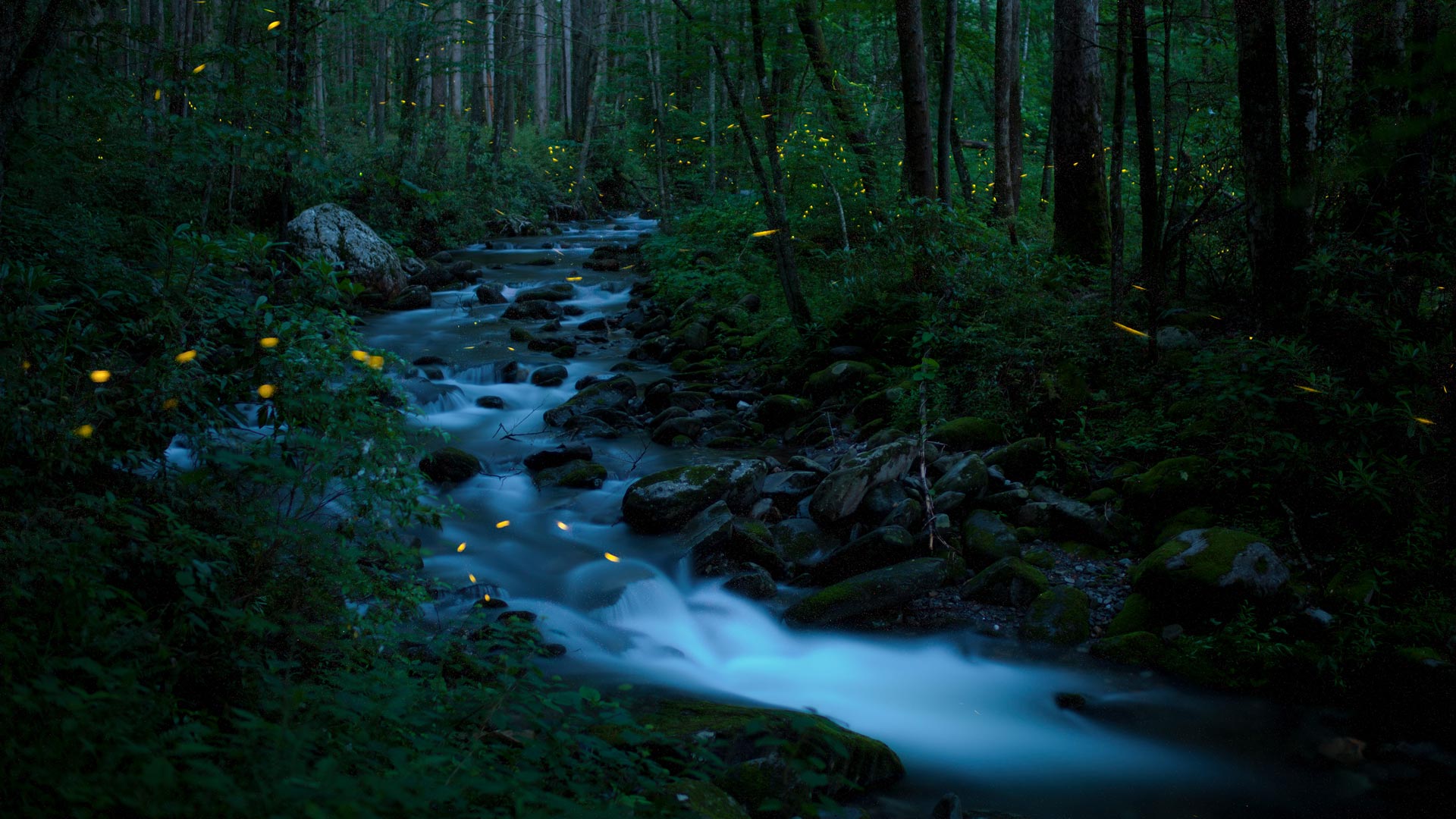 Synchronous fireflies, Great Smoky Mountains National Park, 田纳西州 (© Floris Van Bruegel/Minden Pictures)